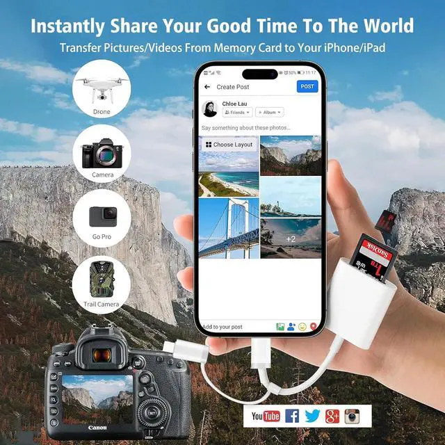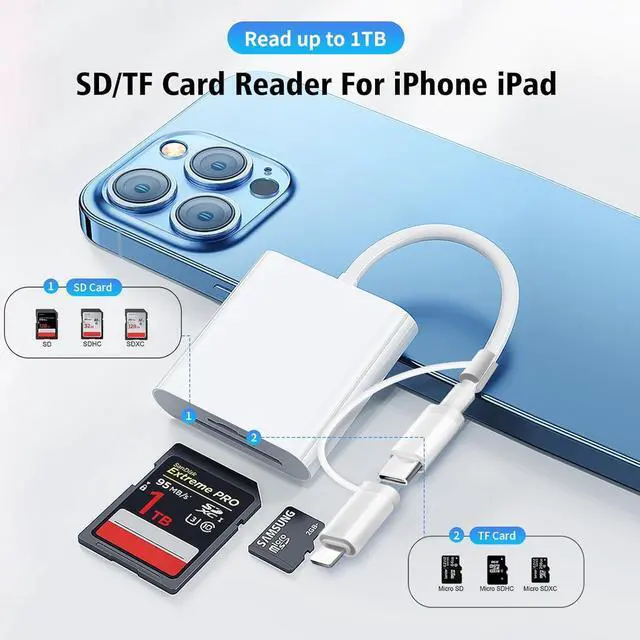 (Note: iOS devices require iOS13 or above). this is the best way to copy photos or videos from sd card to iPhone/iPad you can save a lot of time to do more meaningful things. Support Capacity and Formats- The card reader for iPhone supports FAT32 and exFAT formats standard photo formats such as JPEG and RAW and 4K video formats such as H. 264 and MPEG-4 and supports memory cards up to 1TB in capacity.