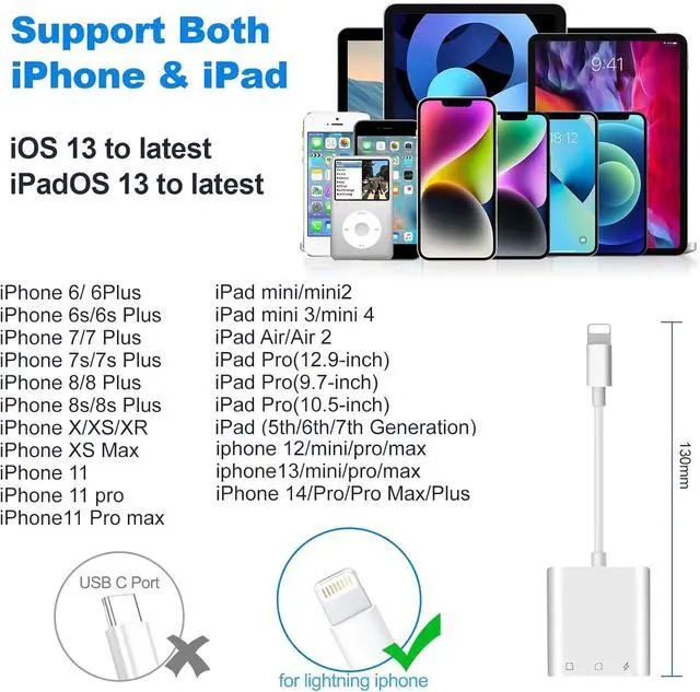 & Format: The camera adapter to iphone supports reading 1TB cards. Compatible with SD/SDHC/SDXC/MicroSD/MicroSDXC/MicroSDHC cards. Support FAT32 and exFAT formats standard photo formats (JPEG and RAW) and SD/HD video formats (H. 264 and MPEG-4); High