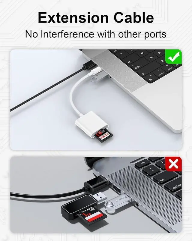 The usbc sd card reader Transfer large batches of photos videos and files in seconds saving you time and increasing efficiency. Compact and travel-friendly sd card reader for iphone usb c lets you edit back up and share photos or video anytime making it the perfect companion for your trips. [Plug & Play Convenience] No drivers neededsimply plug this 2 in 1 sd card adapter into your device and it's ready to go. You can browse photos instantly and select your favorite photos to export. Instantly transfer files with ease. Compact and portable making it the perfect camera adapter for iPhone users.