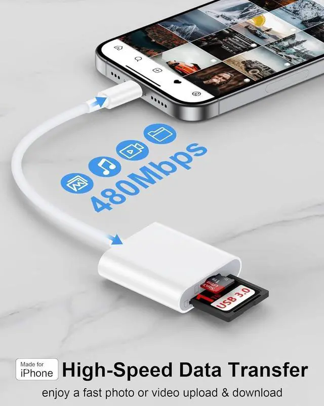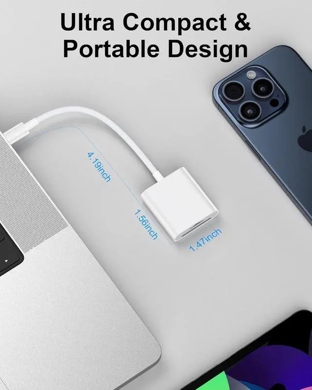 [Wide Compatibility USB C SD Card Reader] This camera adapter to iphone usb c supports OTG function and works seamlessly with a wide range of USB-C devices. Perfect for iPhone 17/17Pro/17Pro Max/Air/16/16 Plus/16 Pro/16 Pro Max iPhone 15/15 Plus/15 Pro/15 Pro Max iPad Pro 11/13 (2024) iPad Air 11/13 (2024) iPad 10th Gen iPad Pro 12.9 Gen 36 iPad Pro 11 Gen 14 iPad Air Gen 46 iPad mini 6 ( 8.3 ) MacBook Pro/Air iMac Mac and USB-C Android phones including Galaxy S25/S25+/S25 Ultra and more. [Durable & Reliable Design] This SD card reader for iPhone is built with high-quality ABS material and features an upgraded chip for faster more stable performance.