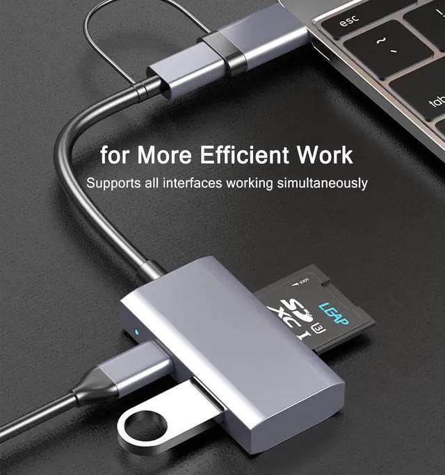 TF card reader: Our USB 3.0 hub multiport adapter is compatible with SD and Micro SD cards with capacities up to 2TB and data transfer rates up to 104MB/s which is good news for travel and photography enthusiasts.