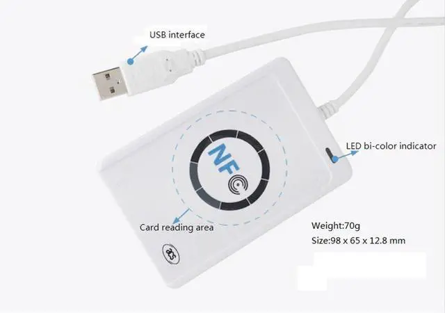 It not only supports Mifare cards and Class A and B cards conforming to the ISO 14443 standard but also supports NFC and FeliCa contactless technology. This is a USB hot-pluggable device that complies with the CCID standard and is ideal for applications such as personal identity security authentication and online micropayments. This is a USB full-speed device (12 Mbps) which reads NFC tags at 106 kbps212 Kbps and 242 Kbps allowing faster read and write speeds and higher efficiencyTo increase the safety factor you can choose to configure an ISO7816-3 compliant SAM card slot in the ACR122.