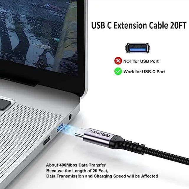[(Superior Durabillity)] Our usb-c extension cable made of aluminum alloy shell and Nylon Braided thread body. The aluminum alloy shell is resistant to corrosion and oxidation and has better heat dissipation performance. The Nylon Braided thread body is tensile and pulls to minimize wear.