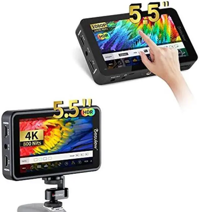 R6 Camera Field Monitor, 5.5 inch Ultra High Brightness 2800nits 1920x1080 4K HDMI Touch Screen Field Monitor 8V DC Output with 3D LUT HDR for DSLR Cameras (Battery not Included)