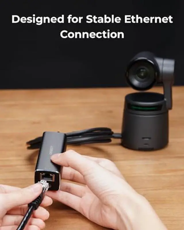 [(Designed For Stable Ethernet Connection)] Experience stable and reliable Ethernet connectivity with the OBSBOT Tail Air USB-C to Ethernet Adapter. Enjoy lower latency compared to wireless connections.