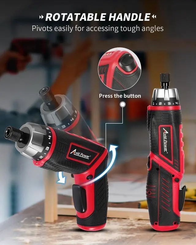 Switch: This electric screwdriver has a dual position handle that converts from straight to pistol grip is flexible for tight and tough-to-reach places task. In addition the forward and reverse switch can help you freely change the screw direction from driving to removingHumanized