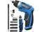 A full charge can work around 500 normal screws(no-load) which can handle most daily work. Do Not charges this electric screwdriver for more than 5 hours as it may shorten battery lifetimeLED Light & Flexible Extension Shaft Brighter Built-in LED Light illuminates the work surface operated by a separate switch provides illumination for more accurate work; cordless screwdriver equipped with a flexible extension shaft can be bent twisted and rotated at many different angles to access narrow spaces and dead ends. Convenient 1/4 Hex Chuck & 50 in 1 cordless screwdriver? inch hex allows for quick screwdriver bit change and holds 1 inch bit tips; The cordless screwdriver includes 36 bits (Slotted Bits Square Bits Torx Bits Pozidrive Bits Phillips Bits) 1× HSS Drill Bit 1× Flex Hex Shaft 8× Socket wrench 1× Magnetic Extension bit holder 1× Nut adapter 1× charger Cable 1× User Manual 1× carry tool case