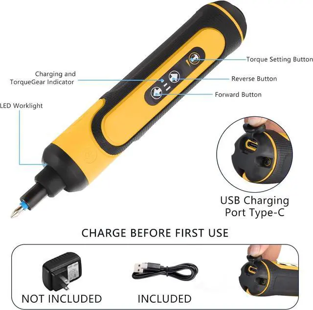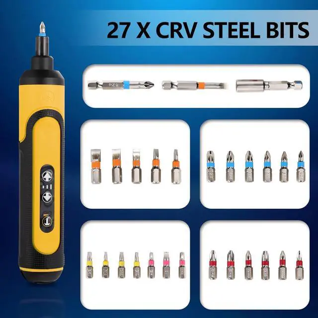 1. Package Includes 1 pc 4V Power Screwdriver 1 pc Extension 24 Bits 2 long driver bits 1 pc Type-C UsB Charging Cable and a lightweight easy-to-carry toolbox. Is completely enough for your electronic repair work2.