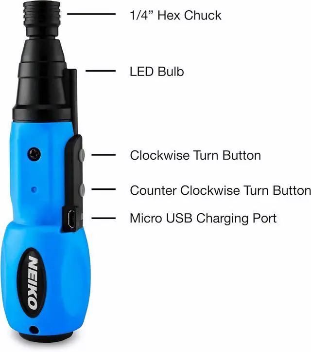 [FEATURES]: An extra bonus of this power driver is an LED light that is mounted below the chuck for a clear line of sight to your screw or nut in the darkest environments with the option to skip the hassle of manual turning and inaccuracy of insertion.