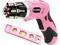 Pivoting handle for tight workspaces: This pink cordless screwdriver includes forward reverse and locked positions. Its two-position handle and LED light enable better usage in dark or confined areas. Battery gauge shows remaining power level: Our rechargeable screwdriver includes a 4V lithium ion battery that stays charged longer and packs more power than similar electric screwdrivers. The built-in battery gauge shows the remaining battery charge.
