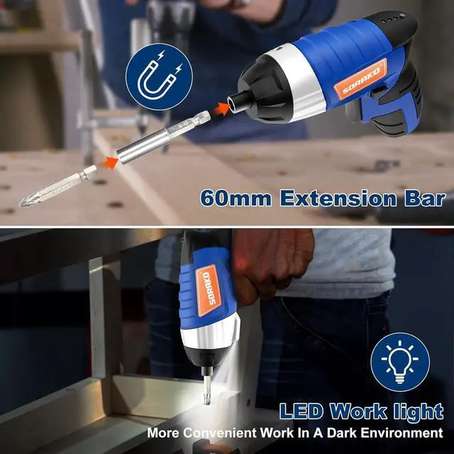 Package Content: 1x Electric Screwdriver Cordless 27 x 25mm Bits 2 x 50mm Bits 1 x 60mm Extension Bar 3 x Rubber Strip Bases 1 x Charging Adapter. We will offer sale-after service. SORAKO provides 24-months warranty If you have any questions about our products please feel free to contact us.