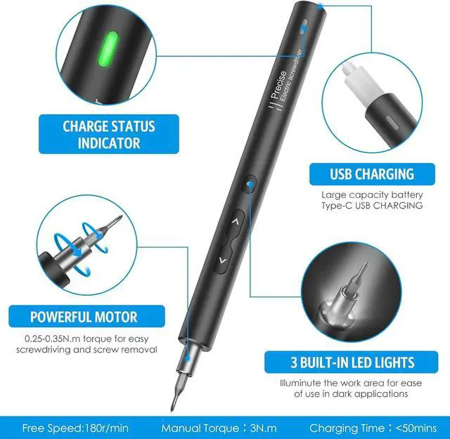 USB CableGift Set Ideas: This Electric Screwdriver for PC Building design as a protable packing box which can be a Father's Day Valentine's Day Gifts make your life more romance and convenient help you work efficiently and intelligentlyAutomatic and