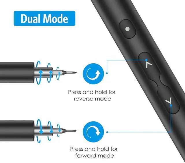 Manual Modes: This Electric Screwdriver for PC Building has an electric torque of 0.25 - 0.35 N. m a manual torque of 3 N. m and a free speed of 180/min (Not suitable for drilling holes screwing boards or screwing home improvement screws) With Type-C