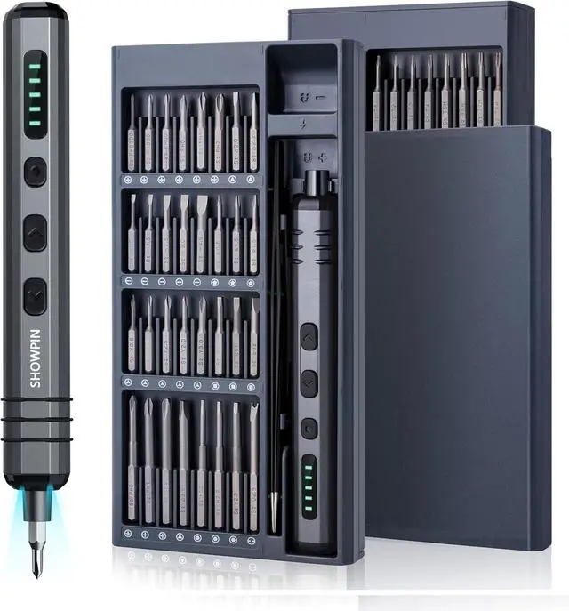 [Convenient & Practical Screwdriver] The screwdriver has a feel similar to holding a pen and is of moderate weight that is not easily fatigued by prolonged use. Equipped with a separate button with forward/reverse rotation capability it can be operated with one hand and is friendly to people with hand injuries. [Additional Small Gadgets] This precision screwdriver set comes with Security Torx Phillips Mini Torx Socket Tri-wing Pentalobe Flathead and Torx 7 types of bits as well as auxiliary kits such as magnetizer magnetic pads prying blades and pry bars making removal installation and collection a breeze.