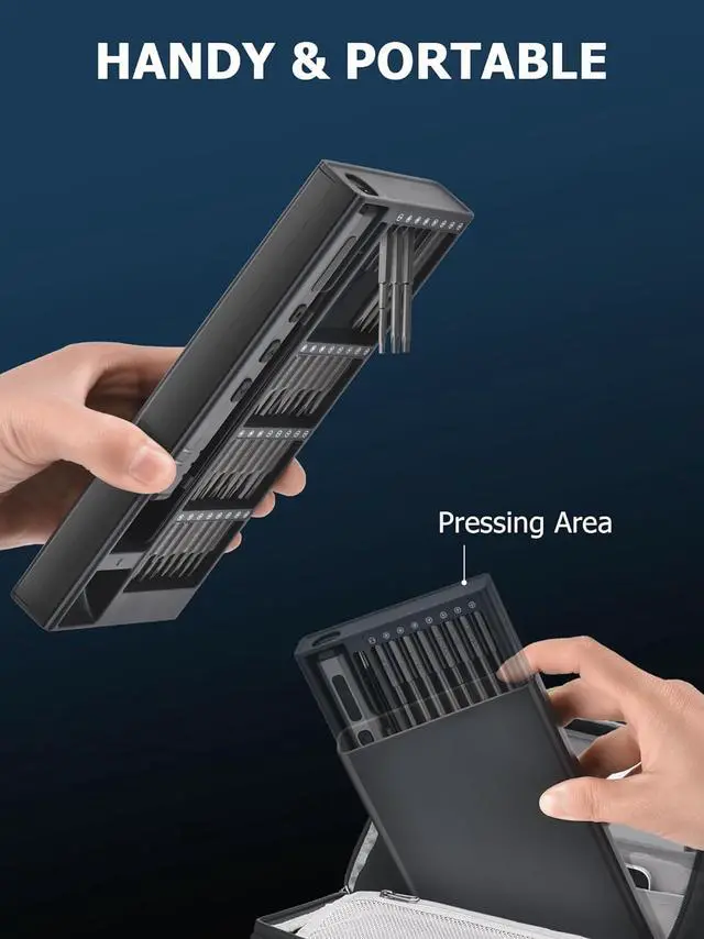 Portable Box]: The box features a pop-up opening and the bit is set in a slot with the icon to use easy and organized. It is only 1.2 inches thick making it convenient for home storage or travel. It is also a surprise gift for the IT tech diy enthusiast.