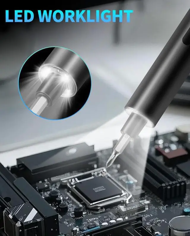 Magnetic Storage Lid & Compact Design The magnetic storage lid and sleek PP housing provide convenient storage for drill bits and tools. The lightweight and stylish body measures only 4.7 by 7.9 inches and weighs only 0.66 lb making it easy to carry. Enhanced Illumination & Easy Operation A built-in LED work light illuminates the target area ensuring precise work even in dark or confined spaces. The ergonomic design combines sleek looks lightweight portability and powerful performance making it perfect for home repairs and DIY projects.