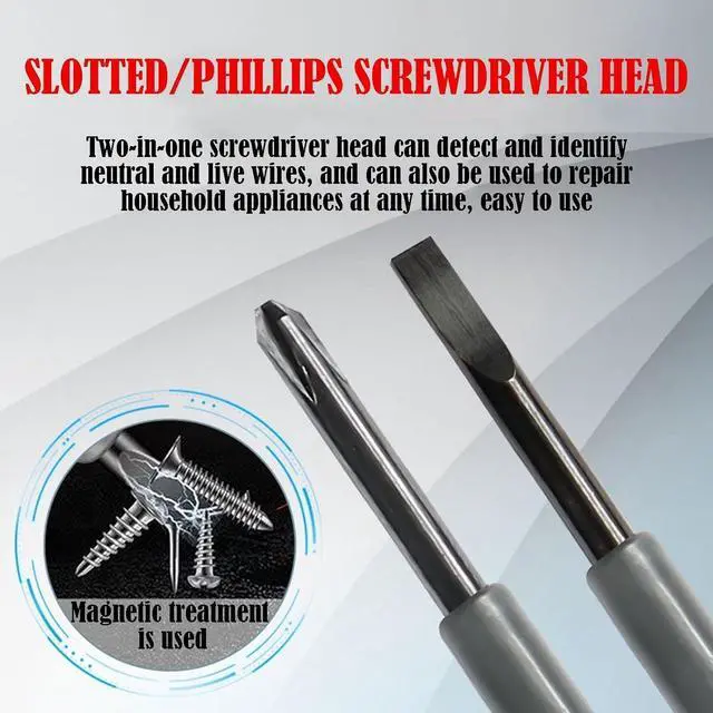 2-in-1 Magnetic Flathead Phillips Screwdriver Electricity Detector Tester Pen Two purposes one for measuring electric pens and the other for screwdrivers.