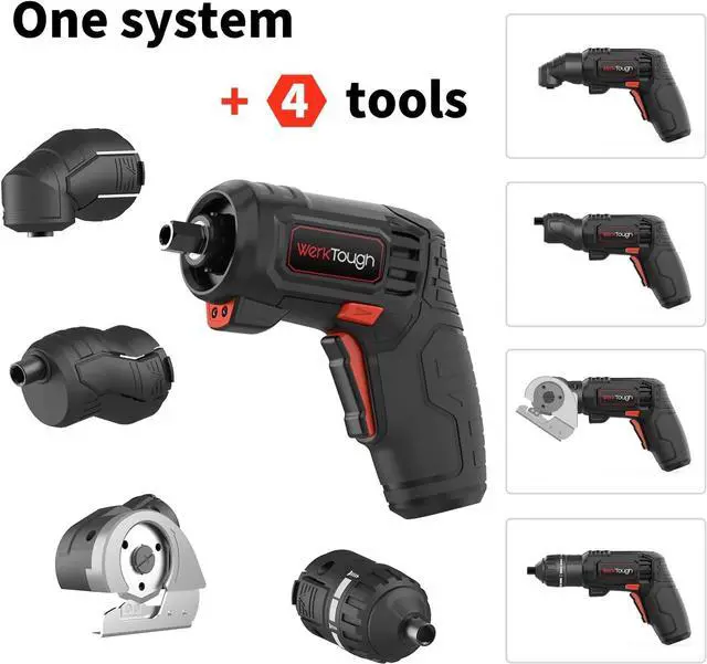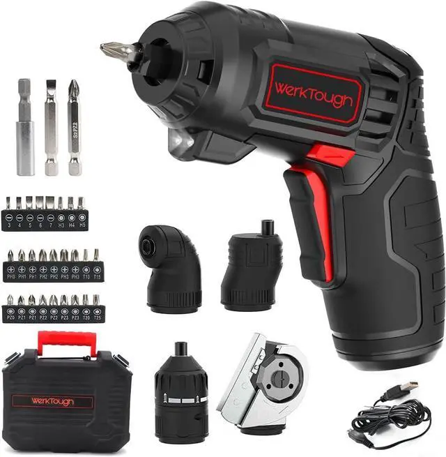 10 Nm Torque for Heavy-Duty Tasks This 4V cordless electric screwdriver delivers 10 Nm torque perfect for assembling furniture tightening screws and tackling tough DIY projects. Cutting Head for Fabric Cardboard & Plastic Includes a cutting head for precise cutting of fabric cardboard plastic and blister packing adding versatility to your toolkit. 90° Conversion Head & Eccentric Head for Tight Spaces Equipped with a 90° conversion head and an eccentric head it adapts to tight corners and hard-to-reach areas with ease. USB Rechargeable with LED Indicators Powered by a rechargeable lithium-ion battery it features USB quick charging an LED battery indicator and an LED charge indicator for uninterrupted use.