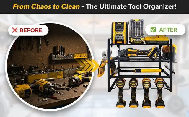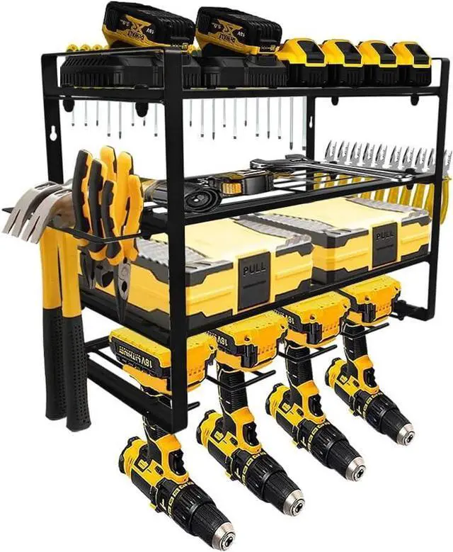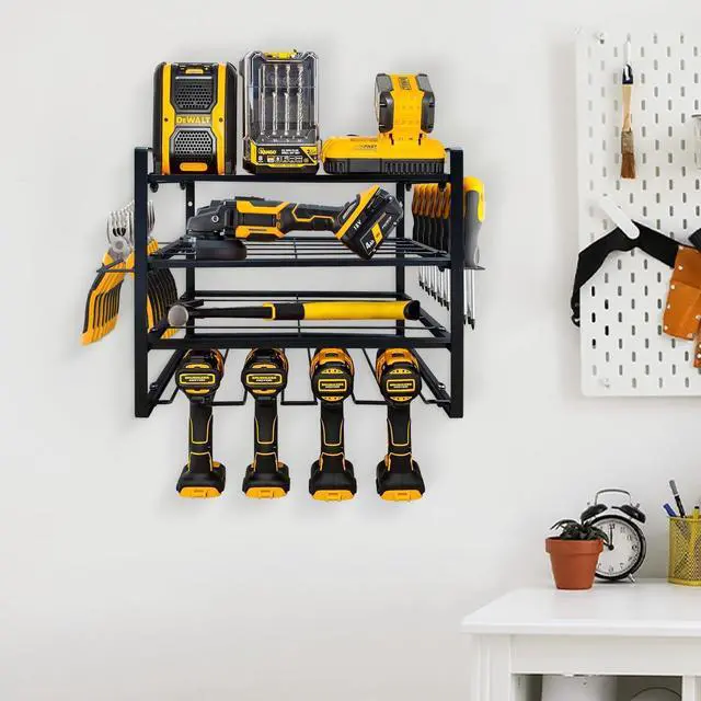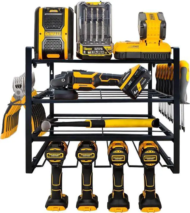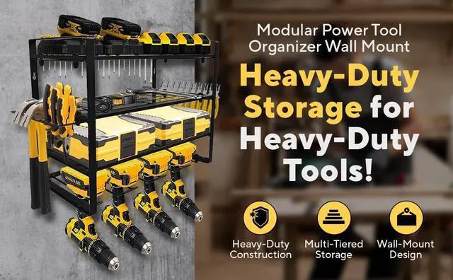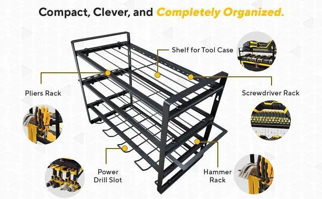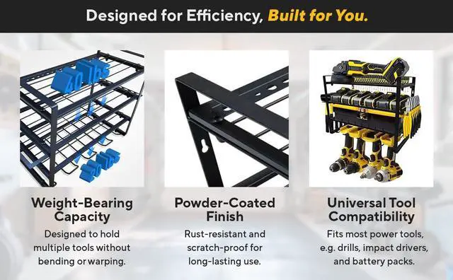 Power Tool Organizer - Streamline your garage with this wall-mounted tool rack built to hold your tools securely. Designed for easy installation on studs or sheetrock it's perfect for organizing tools of all sizes. Carbon Steel Construction - Built with durable carbon steel this wall tool organizer rack can support hundreds of pounds offering reliable strength and long-lasting performance for your garage workshop or shed. Securely hold tools in place without scratching or slipping. Storage for All Tools - Ideal for organizing power drills extra batteries and more this wall-mounted garage organizer rack keeps everything off the floor and within easy reach maximizing space and efficiency.