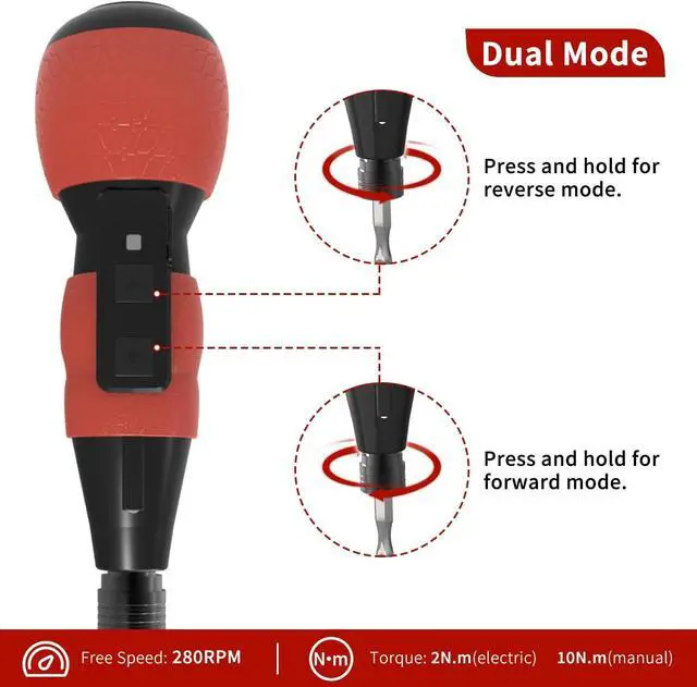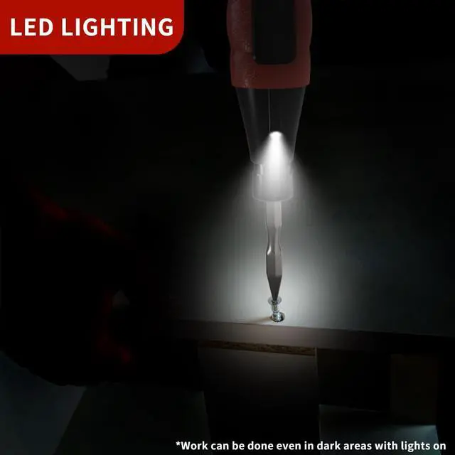 Intelligent LED light: turns on automatically when the screwdriver electric is activated and turns off when the electric screwdriver rechargeable is closed making it easy to use in the dark or in tight spaces. One Hand Operation Compact