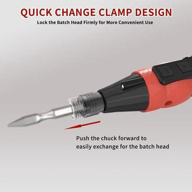 Cordless Electric Screwdriver: 15cm compact design is lightweight and portable screwdriver weighs 202g two buttons to control tightening and loosening (up to loosen down to tighten) easy to operate.