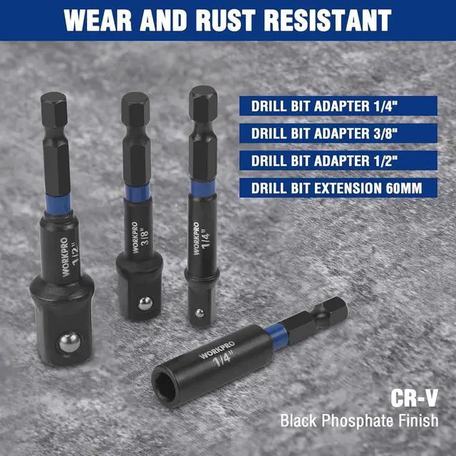 Quality: All impact nut driver set are made of Cr-V steel longer service-life higher shock-resistance. And their surface is electrophoresed with strong resistance to oxidation and corrosion. Clear size marks on each impact drill nut driver. Three Screwdriver Bits are made of S2 steel capable of higher torqueEasier to