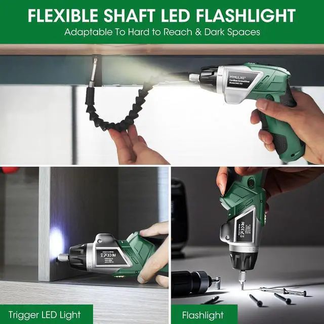 OPERNTION: Electric screwdrivers equipped with a 1/4 inch quick-change chuck the drill bit can be changed instantly without tools improving work efficiency. Power screwdrivers with pivoting handle supports both direct grip and pistol modes ergonomically designed providing a comfortable and effortless grip. Using it can easily handle narrow corners or complex angle operations making the operation more flexible and efficientINDICATOR