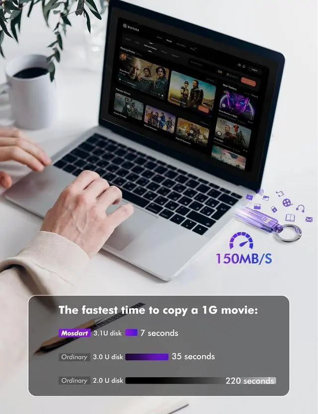 Blazing-fast data transfer: Say goodbye to long wait times! Our USB C 3.1 thumb drive boasts lightning-fast data transfer speeds up to 150MB/S allowing you to transfer files in just seconds.