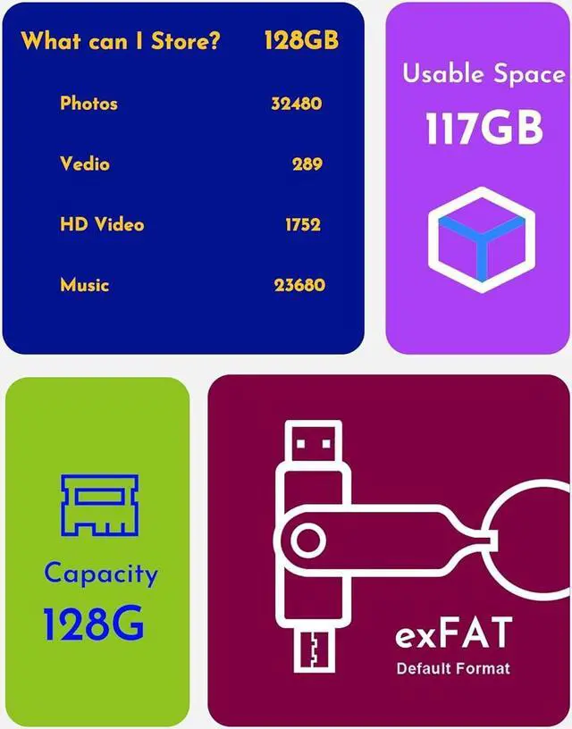 Endless flexibility: Our 128GB USB C 3.1 dual flash drive lets you effortlessly transfer files between Android smartphones tablets and computers. No more frustration with compatibility issues!