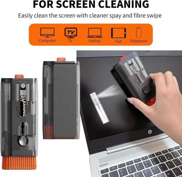 Screen Cleaning: Use the large soft brush to effortlessly clean dust and small debris from the crevices of the screen. The 2mm-high rectangular fiber swipe can fit the four corners of the screen very well and with the screen cleaning spray you can easily remove stains on the screen. The premuim fiber swipe is super soft and delicate will not damage the screen and leave any fibers and water stains. Great for screen/monitor cleaning.