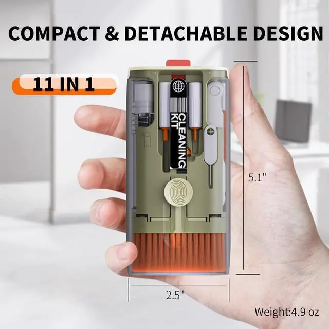 Compact Size & Detachable Design: 11 in 1 computer/laptop cleaner set design with a compact box pull the top rubber to remove and store tools easily. The size 5.1 * 2.5 * 1.3 inches and the weight 4.9 oz. You can easily put it in your backpack or briefcase. Meanwhile you can take out the ultra-light and small earbuds cleaning pen separately weight 0.35 oz which is 20% smaller than the old one and slips easily into a purse or pocket. Great tech gifts for gamers!