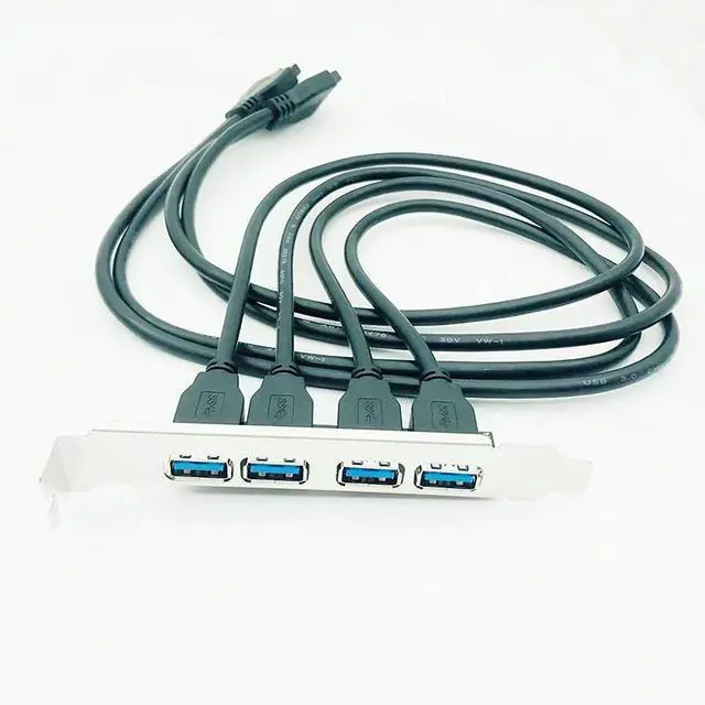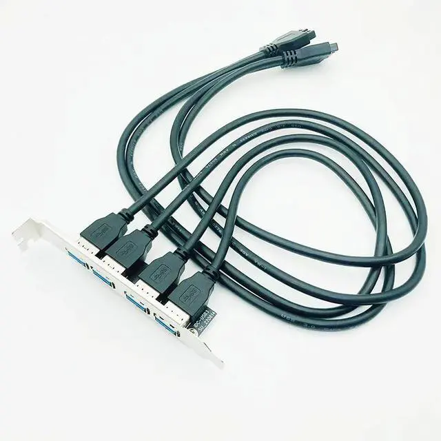 Motherboard USB 3.0 20 Pin to 4 Port USB3.0 Baffle Adapter 60cm Cable USB 3.0 Back Panel Expansion Bracket for PC Computer Black