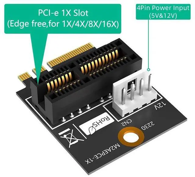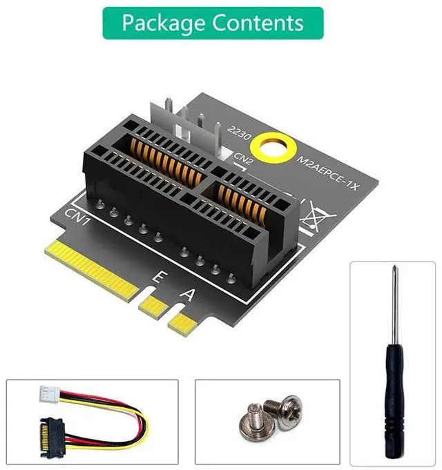 • 2230 M.2 Key A+E to PCIE X1 Adapter Card PCI Express PCI-E 1X Slot to M2 NGFF Key A/A+E/E Converter Riser Card 4Pin Power Supply
