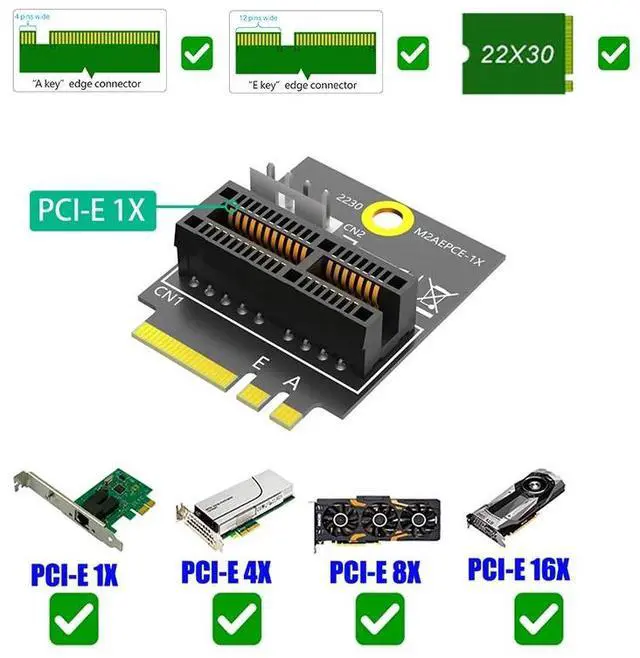 2230 M. 2 Key A+E to PCIE X1 Adapter Card PCI Express PCI-E 1X Slot to M2 NGFF Key A/A+E/E Converter Riser Card 4Pin Power Supply