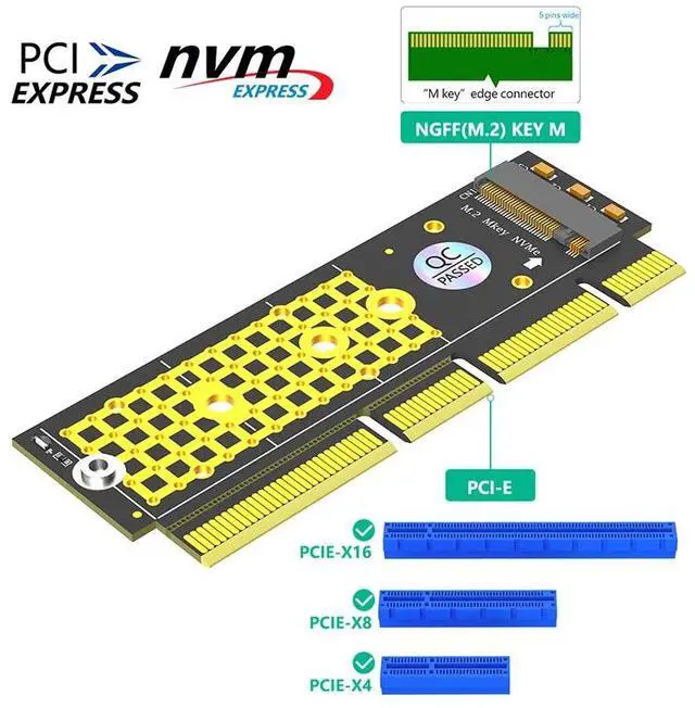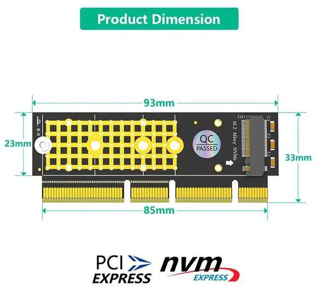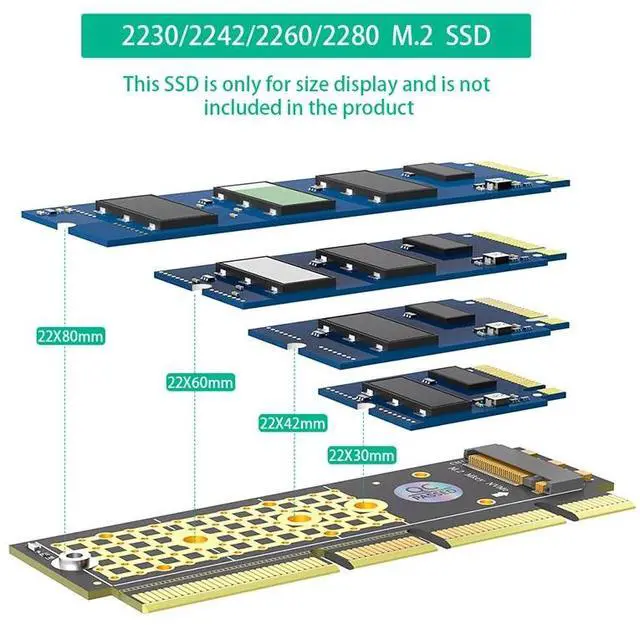 • 2230/2242/2260/2280 M.2 NVMe SSD to PCI Express 3.0 X4/X8/X16 Adapter M Key NVME to PCIE Riser Card with Tantalum Capacitors LED
