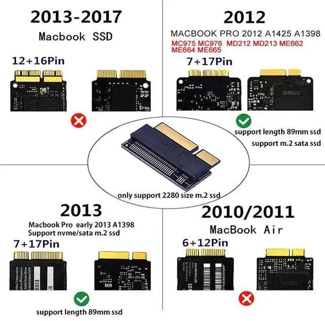 • M.2 NVME SSD Adapter for MacBook Air Early 2013 A1398 for Macbook Pro 2012 A1425 A1398 MC975 MC976 MD212 MD213 ME662 ME664 ME665