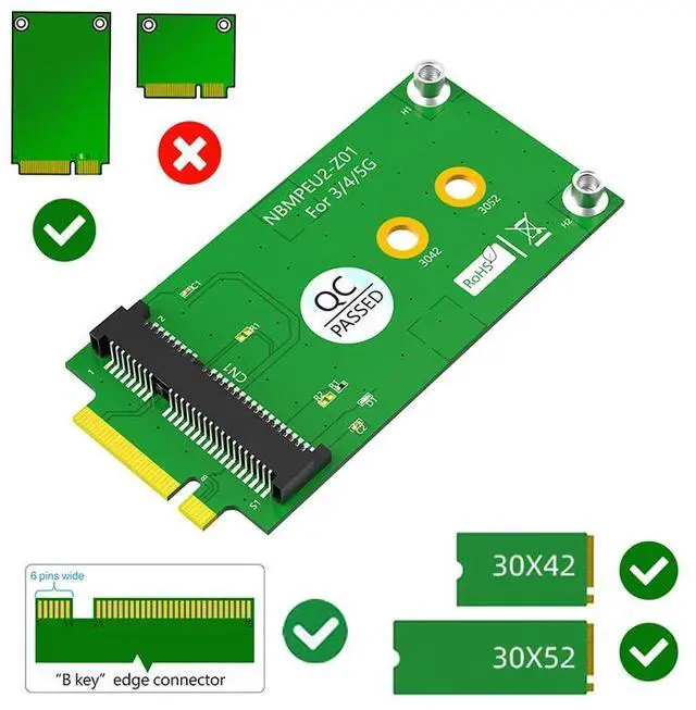 • M.2 Key B Interface to Mini PCI Express Adapter Riser Card Converter for 3G/4G/5G Module Support Full Size Mini PCIE Card for PC