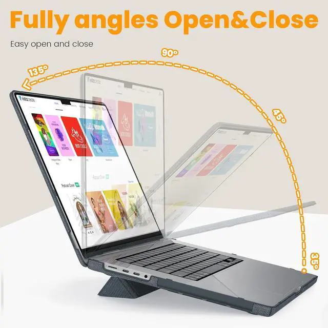 Kickstand & Convenient: The magnetically-folio stand provides a more appropriate angle viewing & typing, easier to use your MacBook Pro 16 inch no matter working, learning or having fun.