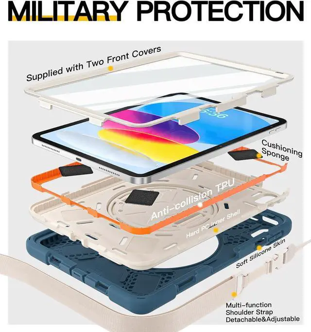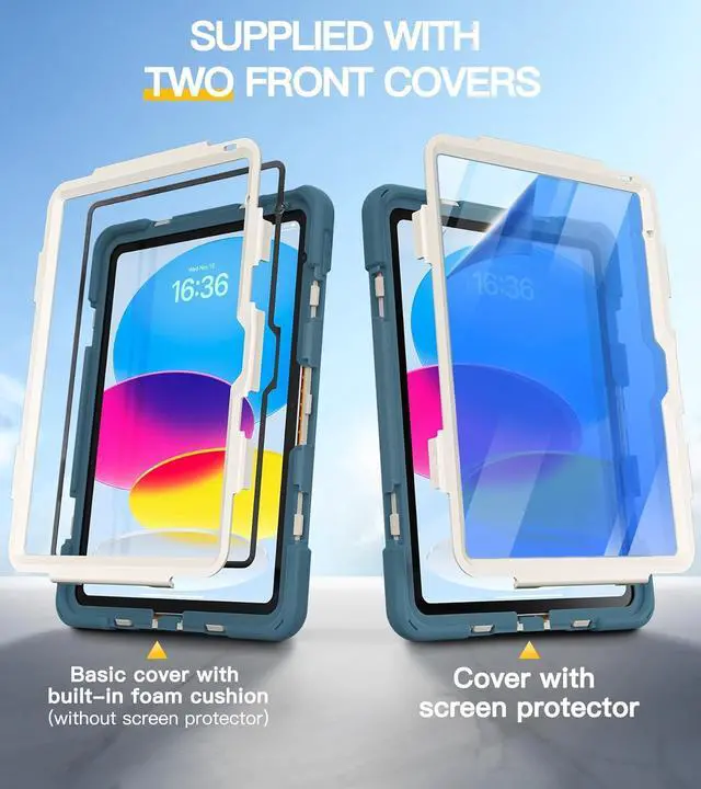 [Two Front Covers: One with Screen Protector]This rugged case for ipad 11th (A16 2025)/10th (2022) Generation prevents screen scratches.Comes with two front covers, one with screen protector the other without (front cover without screen protector has extra foam cushioning), which can be replaced according to your needs.