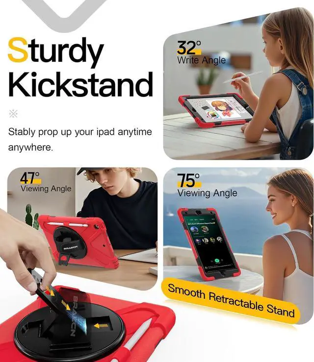 Adjustable & Detachable Carrying Strap Portable Shoulder Strap allows to carry your iPad in landscape/portrait mode securely in outdoors or hang your iPad in kitchen,bedroom,car seat for convenient usage.