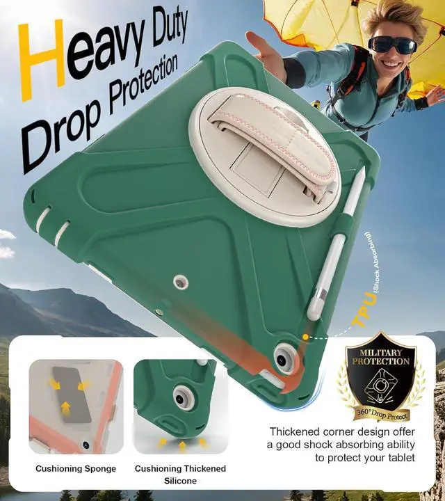 Full Body Protection Three layer structure design with built-in transparent screen protector provides a full around protection against scratch,impacts and shock during daily use. Built-in Apple Pencil Holder and Apple Pencil Cap Holder offer a safe way to store your iPad Pencil while using our case.