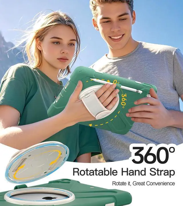 Adjustable & Detachable Carrying Strap Portable Shoulder Strap allows to carry your iPad in landscape/portrait mode securely in outdoors or hang your iPad in kitchen,bedroom,car seat for convenient usage.