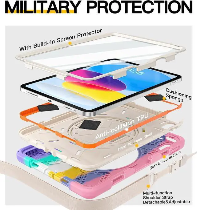 [Two Front Covers: One with Screen Protector]This rugged case for ipad 11th (A16 2025)/10th (2022) Generation prevents screen scratches.Comes with two front covers, one with screen protector the other without (front cover without screen protector has extra foam cushioning), which can be replaced according to your needs.