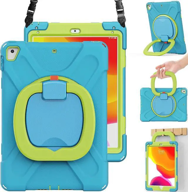 Multi-Function Features: 360°rotating / 180°folding Grip can be used as a handle, easy to hang your iPad in kitchen, washroom, bedroom; Kickstand is stable enough to stand on different surfaces for children to view. And with a adjustable shoulder strap, it is convenient for you to carry and hang everywhere