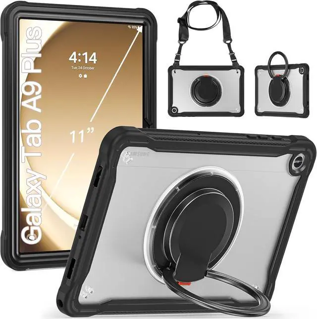 Portable/Adujstable Shoulder StrapAttach the strap to any two corner holes of this Sam-sung Tab A9 plus case. Carry your A9 plus case conveniently wherever you are at home, at work,or outdoor. You can also hang it behind the headrest of the car seat for shared viewing.