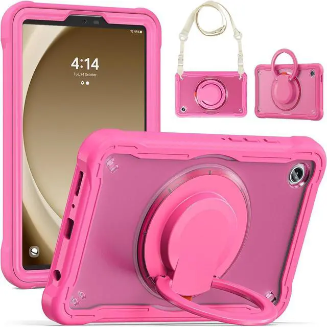 Portable/Adujstable Shoulder StrapAttach the strap to any two corner holes of this Sam-sung Tab A9 case. Carry your A9 case conveniently wherever you are at home, at work,or outdoor. You can also hang it behind the headrest of the car seat for shared viewing.