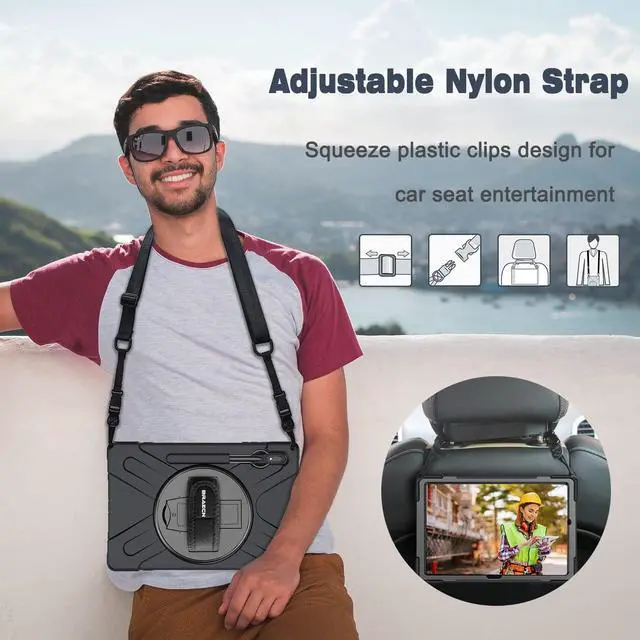 Adjustable and removable shoulder strap: Galaxy tab S7 FE/S10+Plus/S9 FE+ Plus/S9+ Plus/S8+ Plus/S7+ Plus case comes with an adjustable shoulder strap to carry safely outdoors, hang through the shoulder strap in kitchen, bedroom, anywhere, put it on car seat for kids entertainment.
