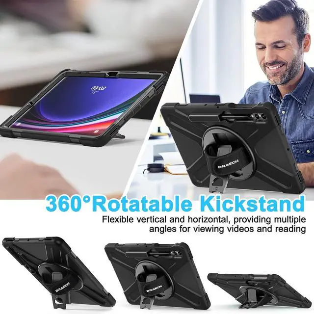 360 Rotating Stand and Hand Strap: This 12.4-inch shockproof protective case for Galaxy Tab S10 Plus/S9 FE Plus/S9 Plus/S8 Plus/S7 Plus/S7 FE features a 360-degree rotating stand on the back for multi-angle viewing; Adjustable wrist strap design adapts to both children and adults, offering flexible comfort for work, study, travel, or entertainment with your S7 FE/S7 Plus/S8 Plus/S9 Plus/S9 FE Plus/S10 Plus tablet. Suitable for any indoor or outdoor setting.