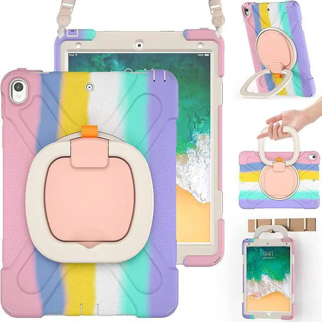 Multi-Function Features: 360° rotating / 180° folding Grip can be used as a handle, easy to hang your iPad in kitchen, washroom, bedroom; Kickstand is stable enough to stand on different surfaces for children to view. And with a adjustable shoulder strap, it is convenient for you to carry and hang everywhere