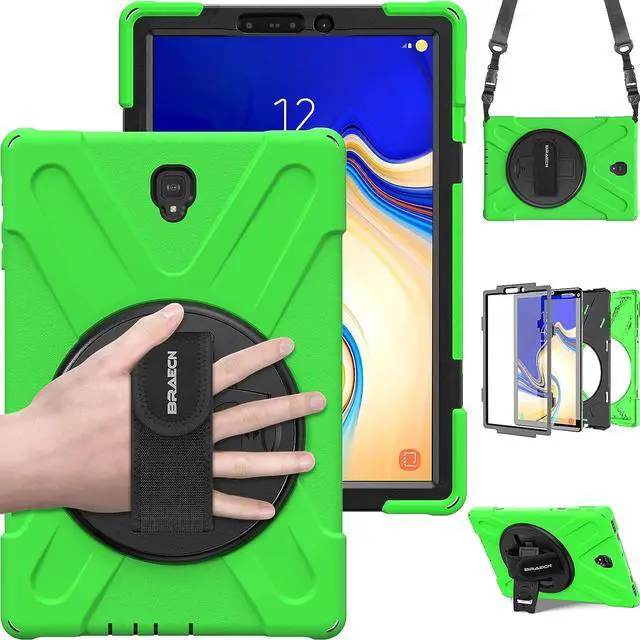 360° Swiveling Stand & Hand StrapLocated on the back of Sam-sung Galaxy Tab S4 case 10.5 inch, built-in 360 degree rotating kickstand and adjustable handle hand strap provides a more flexible and convenient way to use your tablet during work, study or journey, ideal for students,teachers,engineers,cashiers and waiters,etc.
